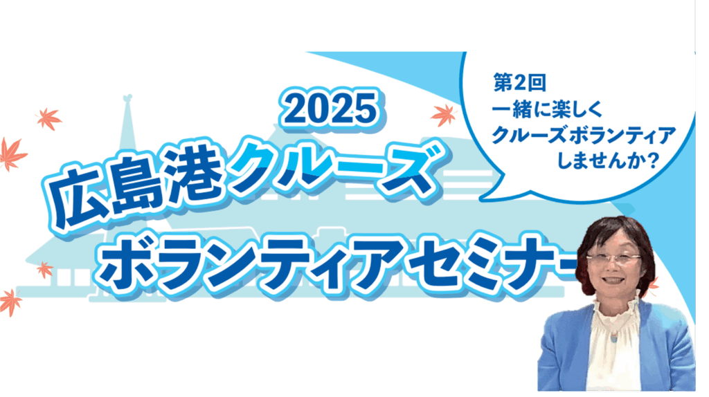 ●長年通訳ガイドとして活躍されている講師をお招きし、クルーズボランティア向けセミナーを開催します(一般募集有)。 日 時:令和7年11月27日(木)14:00~15:30 場 所:広島港クルーズターミナル CIQ棟 問合 […]