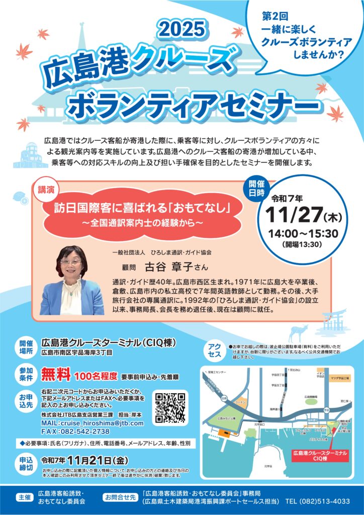 11/27(木)『広島港クルーズボランティアセミナー(第2回)~一緒に楽しくクルーズボランティアしませんか?~』について